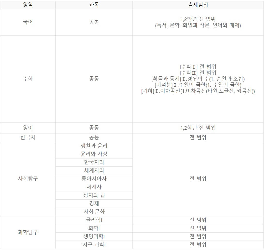 고3 – 전 범위, 과학탐구 Ⅱ 제외